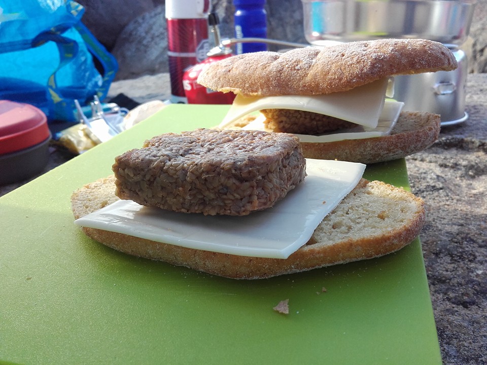 Kuivamuona oli pääasiallinen ruoka päivällä. Termospulloon tankattiin aamulla kuumaa vettä, joka nopeutti päivän pysähdystä huomattavasti. Toisessa termarissa oli puolet hunajaa puolet teetä. Aamupalalla paahdettiin leipää pannulla runsaassa voissa, lisättiin päälle juustoa ja pekonia. Ei ollut kevyttä, koska päivän tarve oli minulla noin 4500 kcal. Meni useampi päivä siihen, että tottui ja pystyi syömään tarvittavan määrän ruokaa. Kun tähän oppi, tuntui, että mikään ei ole riittävä määrä. Yhdeltä istumalta voi syödä kolme normaalia ravintola-annosta jälkiruokineen ihan helposti.