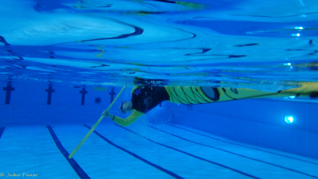 Ala-asennosta sitten vaan ylös jotta voi taas tulla alas. Sitä se on eskimoharjoittelu. (kuva Juho Paaso)
