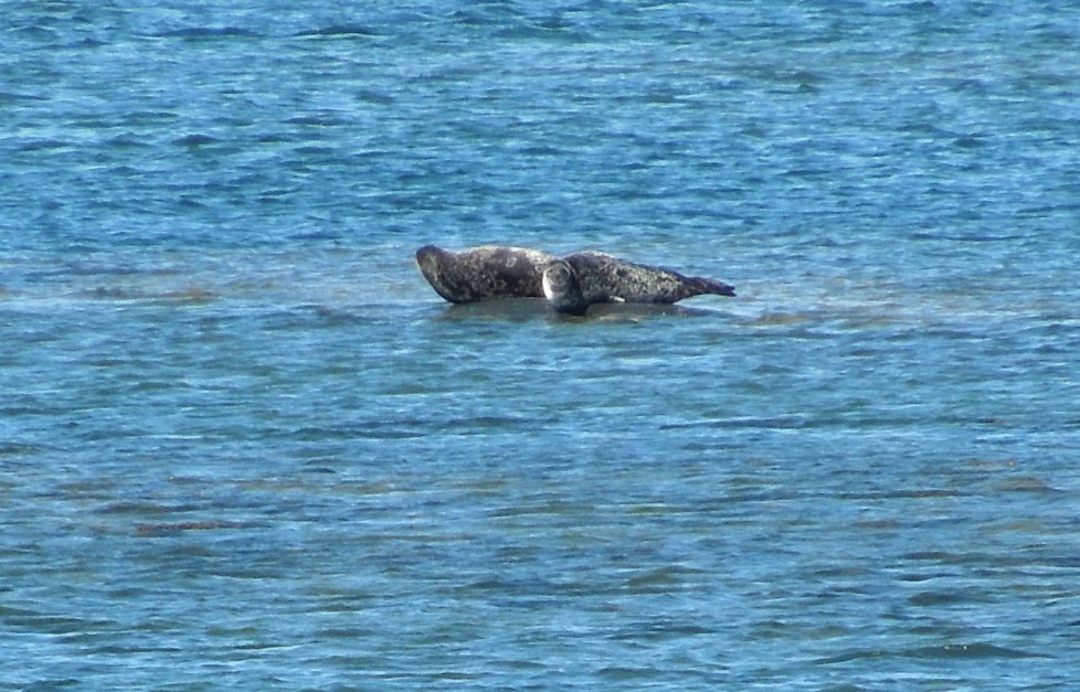 Seuraavassa majapaikassa vietimme seuraavan päivä. Saari oli suuri ja siinä riitti kierreltävää ja kuvattavaa. Heittelin siinä samalla hieman uistintakin, ihan vaan sen takia että siima suoristuisi – mitään kalaan kumminkaan tule. Eikä kyllä tullutkaan. Matkan aikana oli nähty paljon lintuja mutta nyt saatiin linssille ihka elävät hylkeet. Siellä ne paistatteli päivää. Kiikarilla niitä tuli katseltua ja Juholla kun oli pitkä putkikamerassa saatiin kuviakin. Minun pokkarillakin löytyi se pieni musta piste kuvan keskelle vaikka kuinka zoomasin kaikki mitä Nikonista ulos sain.