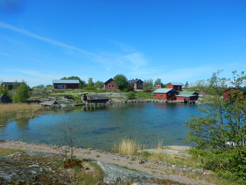 Sundskär on aikalailla suuri saari ja kun se viimeksi kierrettiin ympäri ei ollut tarvetta nyt tehdä sitä uudelleen. Lintuja oli tällä puolella saarta paljon, eikä ne kovin moksiskaan olleet siitä, että me siellä olimme seassa. Päätimme lähteä meloen kiertämään lähisaaria ja katsastamaan Österskärin sataman. Tämä ulkosaariston karuissa maisemissa oleva satama ei ole minkään reitin varrella, joten sinne pitää erikseen lähteä. Se onkin varmaan yksi seikka mikä tekee satamasta niin kiinnostavan ja entisaikaa henkivän paikan. Saaressa ei ole talviasutusta, mutta kesäisin satamaa hoitaa vanhempi pariskunta. Nyt emme kuitenkaan nähneet muutamaa venettä lukuunottamatta ketään.