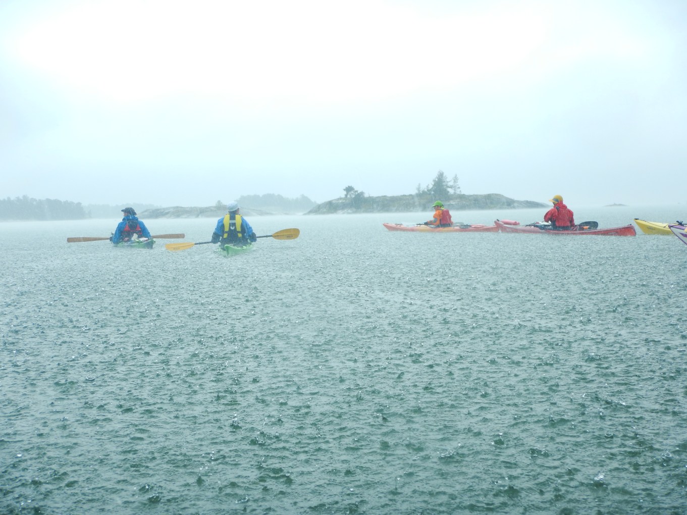 Sääennusteet oli luvanneet aikalailla rivakkaa tuulta, jopa niin että oltiin jo siirtymässä varasuunnitelmiin. Pitäydyimme kuitenkin tässä alkuperäisessä ja kääntyisimme sitten takaisin jos oikeasti keli olisi isommalla selällä paha. Ensimmäisen kilometrin jälkeen alkoi sataa oikein kunnolla, pieni kesäkuuro ilman ukkosta.