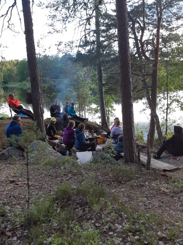 Iltapalaa tehtiin porukalla nuotion loimutessa. Syötettiin samalla hyttysetkin ennenkuin karkoittimet alkoi toimia kunnolla. Rohkeimmat kävi vielä iltauinnillakin huuhtomassa päivän hiet ennen makuupussiin ryömimistä. Vielä ennen nukkumaan menoa pari venettä manaili lahdella meitä. Oltiin viety heiltä paikka viettää iltaa. Harmi, me oltiin täällä eka. Kyllä olis tilaa löytynyt, mutta taisivat hakea omaa rauhaa. Lähtivät sitten menemään kahva oikoisena jonnekin muualle.