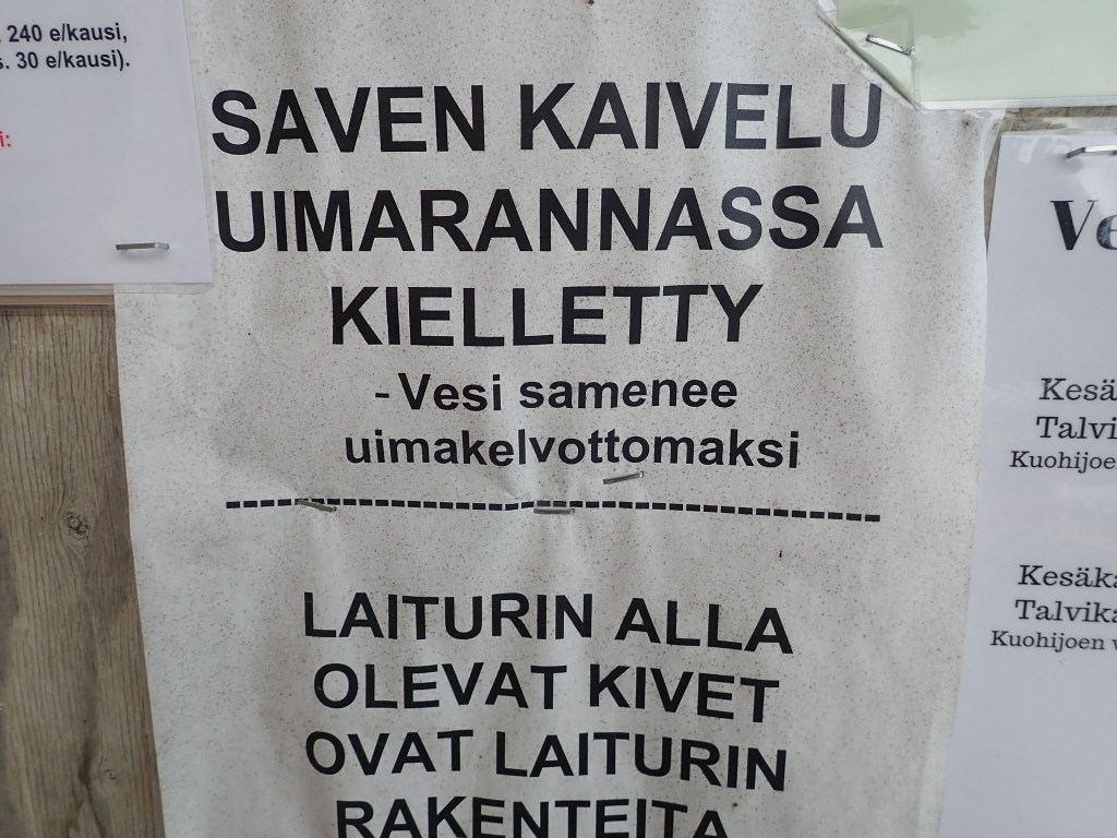 Pujahdimme Harjunsalmesta Leppämälle ja huitaisimme siitä yli Pirttilahden uimarannalle. Silloin alkoi sataa. Onneksi rannassa oli katos jonka suojissa värjöteltiin eväitä syöden. Oltiin siinä palelemisen rajalla kun päätettiin jatkaa matkaa. Ja edelleen satoi.