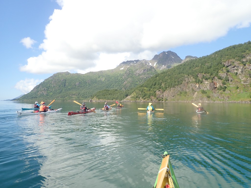 Tottuneesti pakattiin kajakit ja oltiin aika nopeasti valmiina reissuun – kuten tällä porukalla nyt yleensäkin on tapana. Oppaiden antaman ohjeistuksen jälkeen polkaistiin kajakit vesille ja matka alkoi. Ai että mitä maisemia onkaan tiedossa.