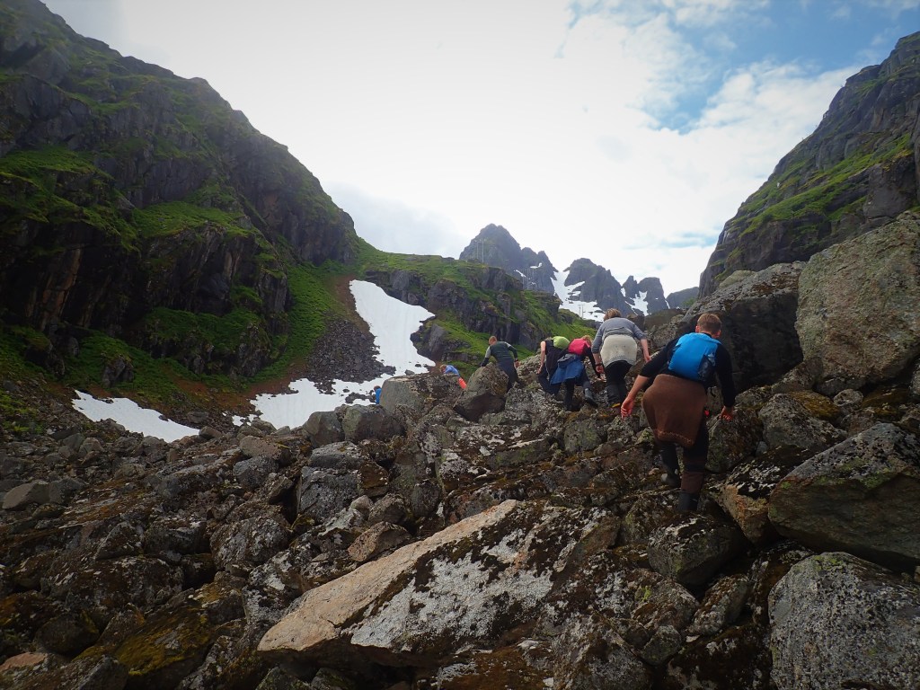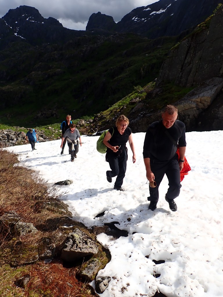 Pienen ajomatkan ja pitkän tunnelin jälkeen olimme lähtöpaikalla Austertraumen parkkipaikalla. Siellä odottivat oppaamme Petri Sutinen ja Petteri Tiainen. Edellisen viikon ryhmä tulikin meitä matkalla vastaan edellisenä päivänä.